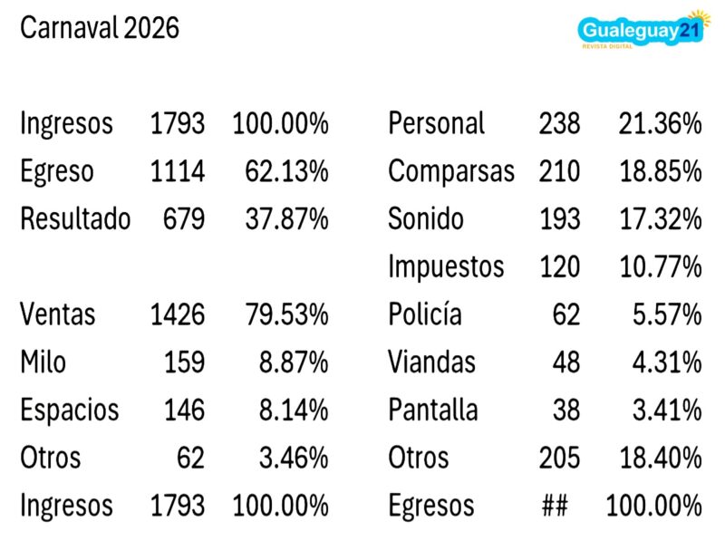 Colocando a Gualeguay como uno de los escenarios “más destacados” de la provincia, entre otras exageraciones, la Municipalidad difundió el balance 2026 por mensaje. Lo saliente es que obtuvo 1,8 mil millones de pesos por ingresos y 1,1 mil millones por egresos, arrojando un resultado positivo de 680 millones. De los informado resulta curioso un cuadro con datos que desata inquietudes sobre la capacidad y la venta.